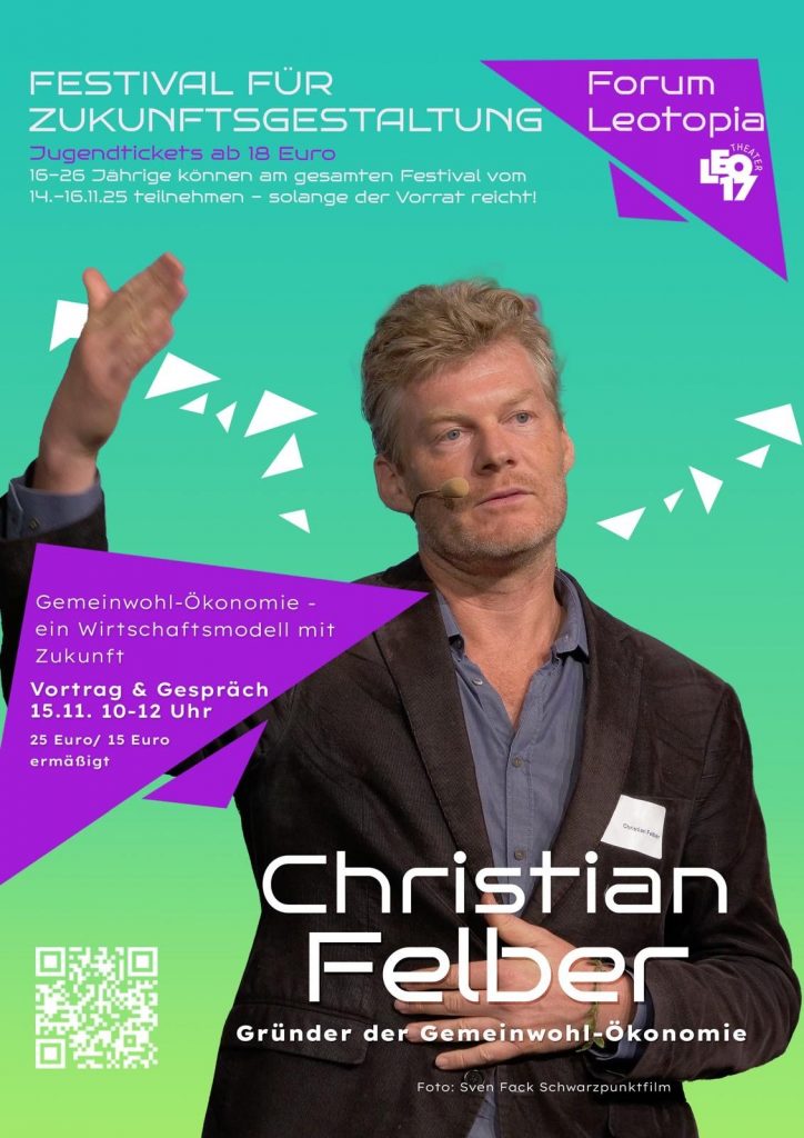 Der Gründer der Gemeinwohl-Ökonomie, Christian Felber, kommt zu uns aufs Festival! In seinem Vortrag zeigt er, wie eine Wirtschaft aussehen kann, die nicht auf Gewinnstreben und Konkurrenz basiert, sondern auf Kooperation, Fairness und Nachhaltigkeit.